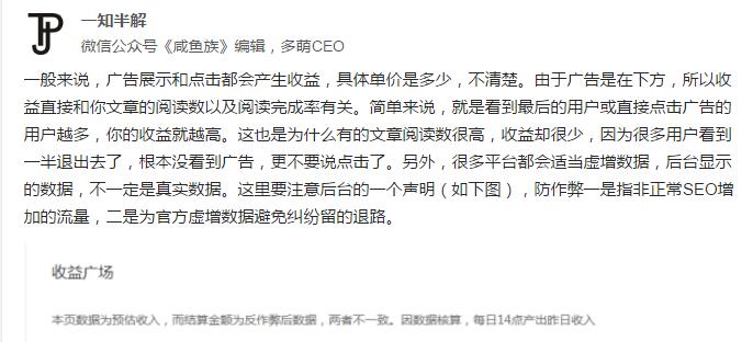 需要說明(míng)的是:閱讀量和(hé)點擊量要成比例不能過高(gāo),按照我做(zuò)百度聯盟的經驗。不要超過 1%。僅供參考,具體(tǐ)的大(dà)家(jiā)測試測試,發群裏。目前,沒有(yǒu)懲罰機制(zhì)。