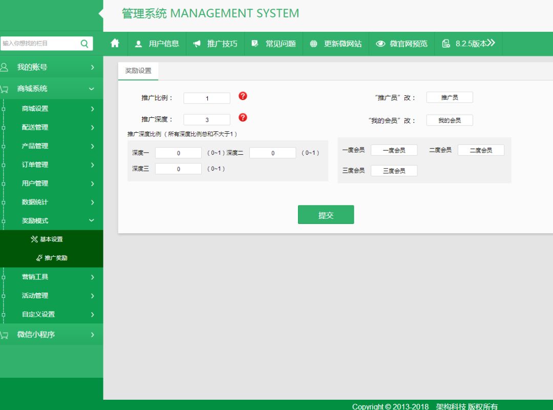 相對于其它的營銷方式,開(kāi)通(tōng)小(xiǎo)程序商城的分銷功能成本較低(dī)。小(xiǎo)程序商城分銷的運用是基于微信圈社交資源的合理(lǐ)利用,獲客成本低(dī)還(hái)有(yǒu)保障。再者,商家(jiā)提供給推廣員即分銷員的傭金是按其推廣深度和(hé)比例計(jì)算(suàn)的,傭金高(gāo)說明(míng)推廣員為(wèi)商家(jiā)帶來(lái)的消費額更高(gāo),商家(jiā)實際投入與盈利相比非常合理(lǐ)。分銷的傭金比例由商家(jiā)設置,商家(jiā)可(kě)根據整體(tǐ)的投入規劃進行(xíng)實時(shí)調整,主動權在于商家(jiā)。