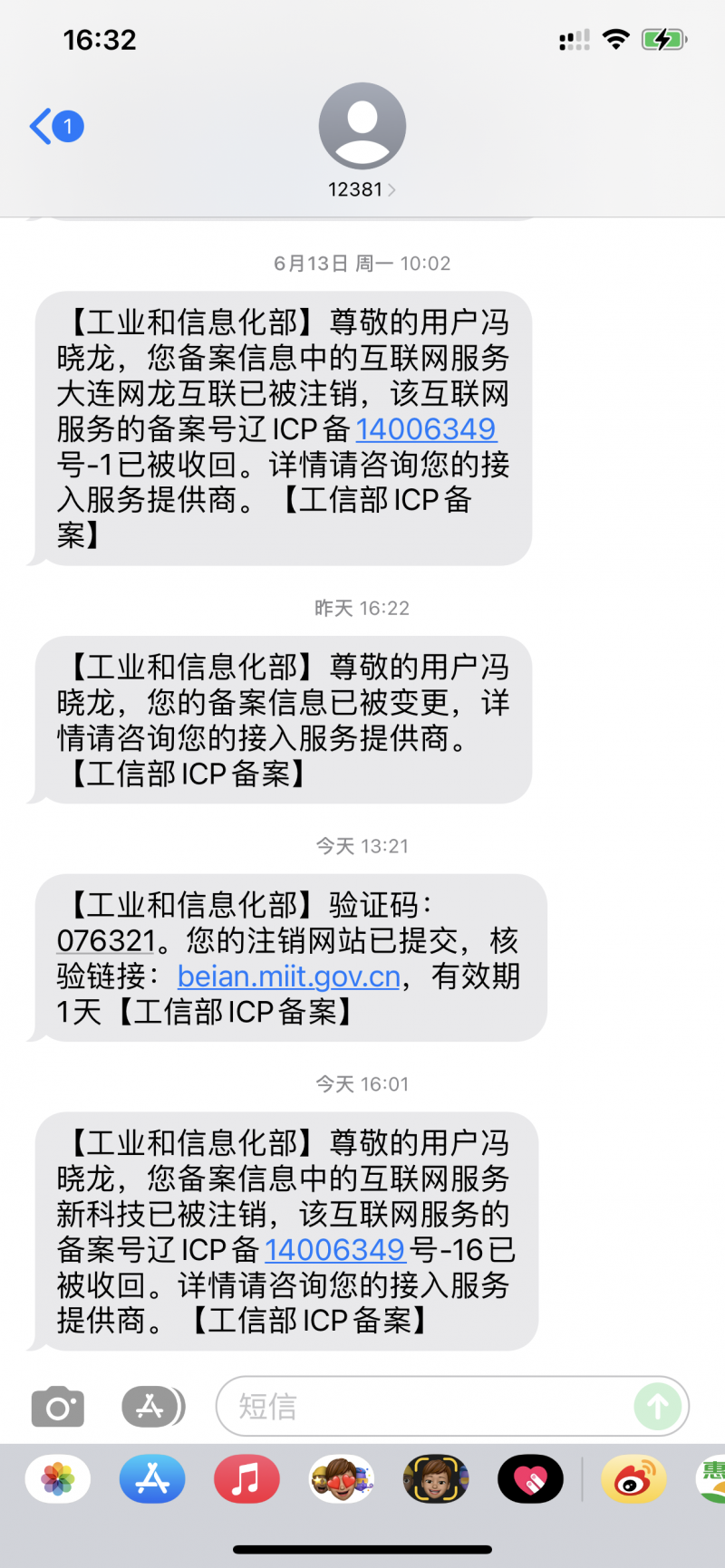工信部取消備案成功提示短(duǎn)信